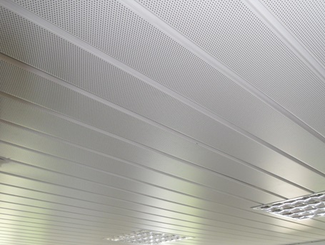 Aluminiowe sufity panelowe BRF NUOVA z zamkniętymi złączami są dostępne z gładką lub perforowaną powierzchnią