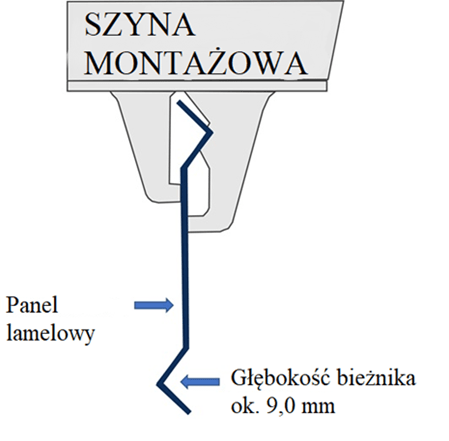 Szyny montażowe podwieszane są za pomocą dostępnych w handlu linek zwieszakowych (patrz akcesoria do sufitów metalowych).